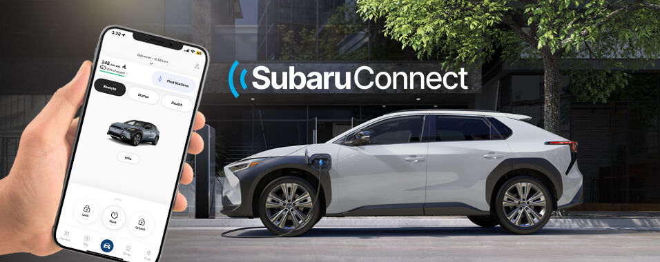 SubaruConnectTM1** is an in-vehicle technology system that connects your Subaru Solterra to the world around you, bringing added safety, security and convenience to your every drive. Using an on-board wireless network and linked to the SubaruConnectTM App through your smartphone, the system keeps you always informed on the status of your vehicle, lets you share that information with SubaruConnectTM representatives and gives you the peace of mind that you rightfully deserve.